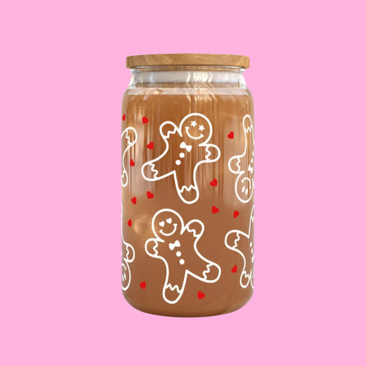Can Shaped Glass, 16oz - Christmas Gingerbread Cookies