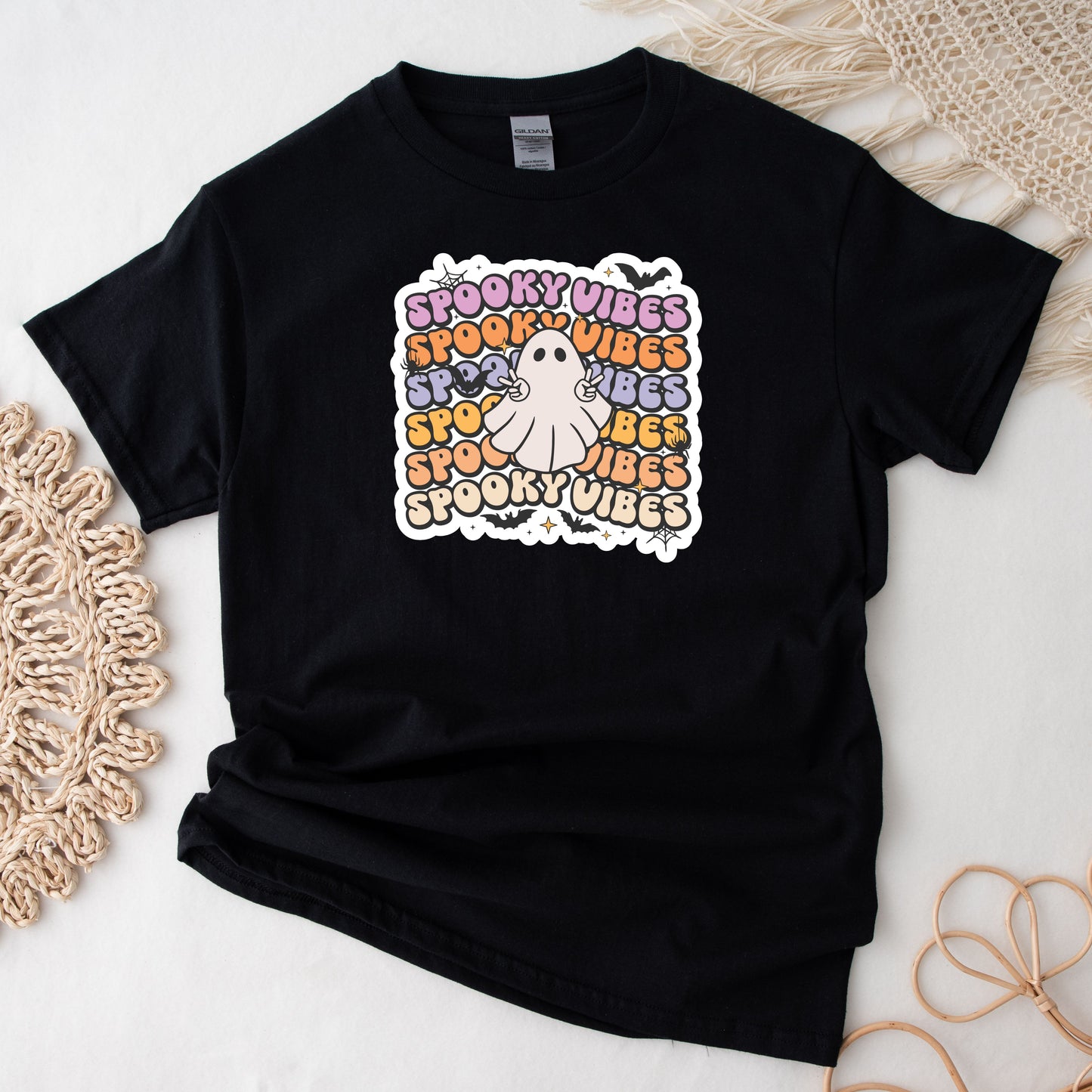 SWEATSHIRT or T-SHIRT- HALLOWEEN - spooky vibes ( black , vinyl print )