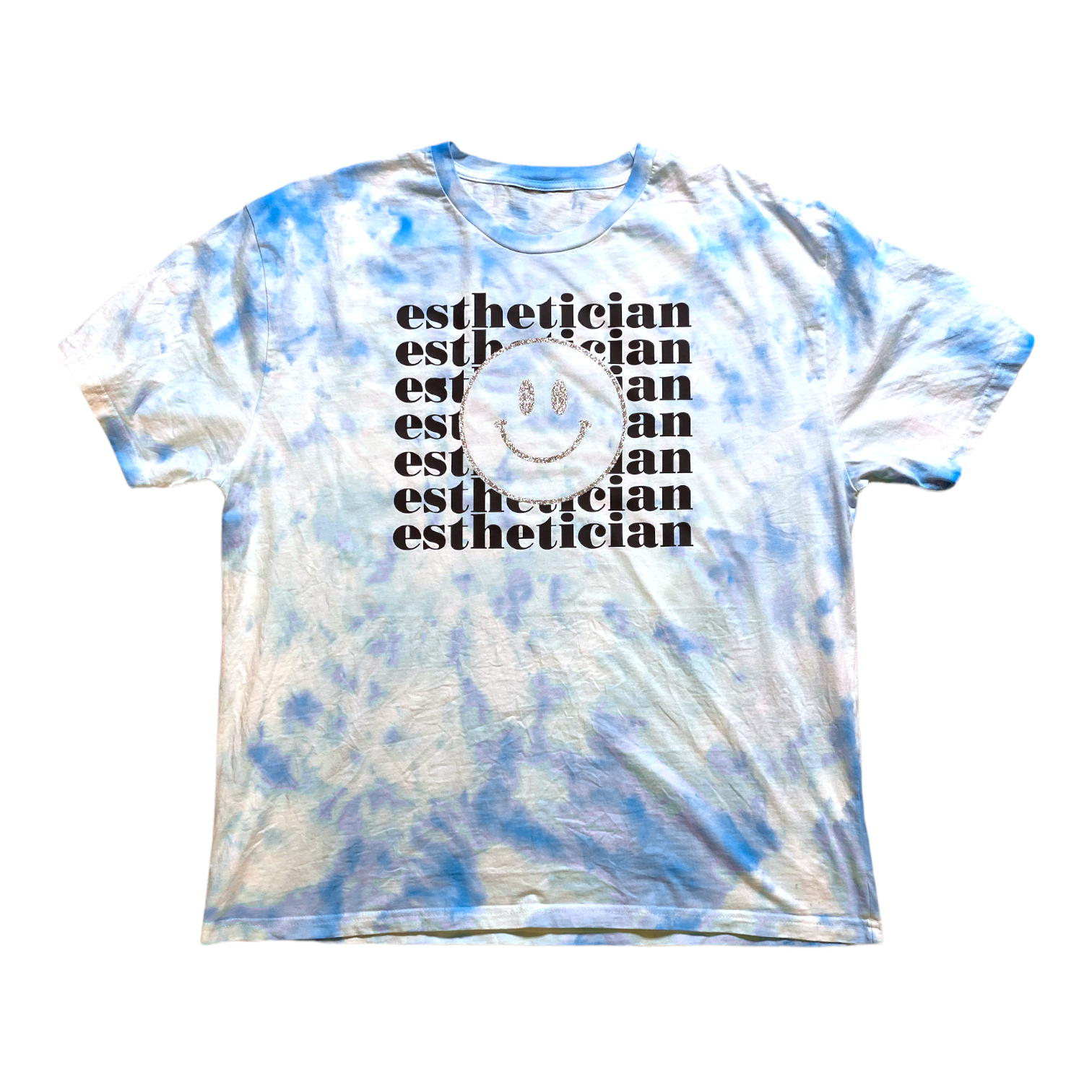 T-SHIRT - ESTHETICIAN ( tie dye, relaxed fit, vinyl print with glitter )
